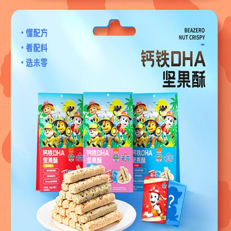Beazero海绵宝宝-汪汪队立大功钙铁锌DHA坚果酥儿童零食60g 3口味,备注发货,未备注随机口味发货
